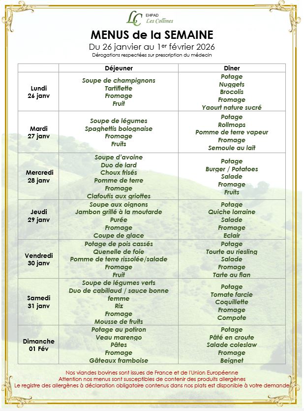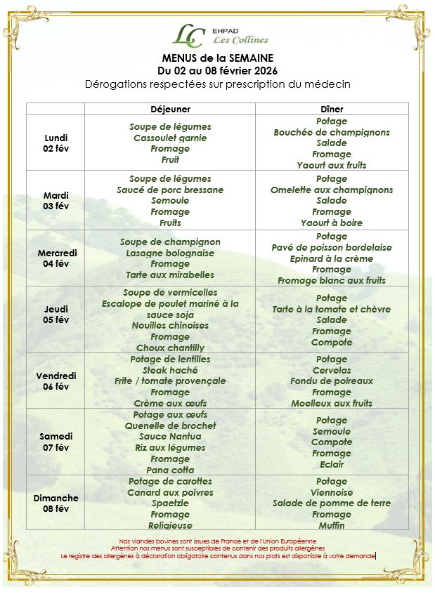 Le menu invité est proposé au tarif de 15 €. Il comprend une entrée, un plat, du fromage, un dessert, ainsi qu’un verre de vin.